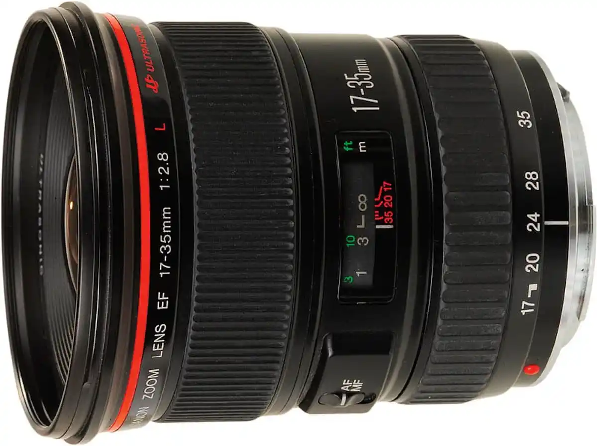 A large aperture, super wide angle zoom lens with the wide-angle focal length of 17mm. The optical system has two aspherical elements, including the first lens element which is a ground and polished aspherical glass lens element, thoroughly eliminating the distortion that is normally a problem with wide angle zoom lens. This lens delivers sharp and crisp performance throughout the entire zoom range. Its ring USM (Ultrasonic Motor) drive and inner focusing contribute to silent and fast AF, full-time manual focusing and superb picture quality in close-range photography. Since the front lens element does not rotate during focusing, use of circular polarizing filter is facilitated. The drop-in gelatin filter holder at the rear can hold three filters. A large, dedicated, petal-shaped lens hood offers superior light shading.